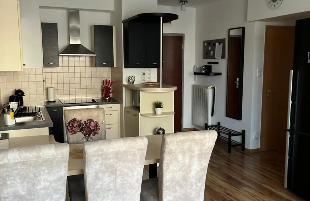 El Danube Terrace Apartment With 2 Bedroom And Private Parking dispone de una pequeña cocina con cafetera, una nevera y un horno. El aeropuerto Budapest-Ferenc Liszt está a 35 minutos en coche, y la parada de autobús Fiastyuk utca, justo al lado del Danube Terrace Apartment With 2 Bedroom And Private Parking.